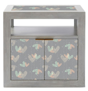 use My design in wallpaper at +spoonflower peel n stick to cover the door fronts of the bedside table like in the image bellow to give your tired bedside table a face lift.